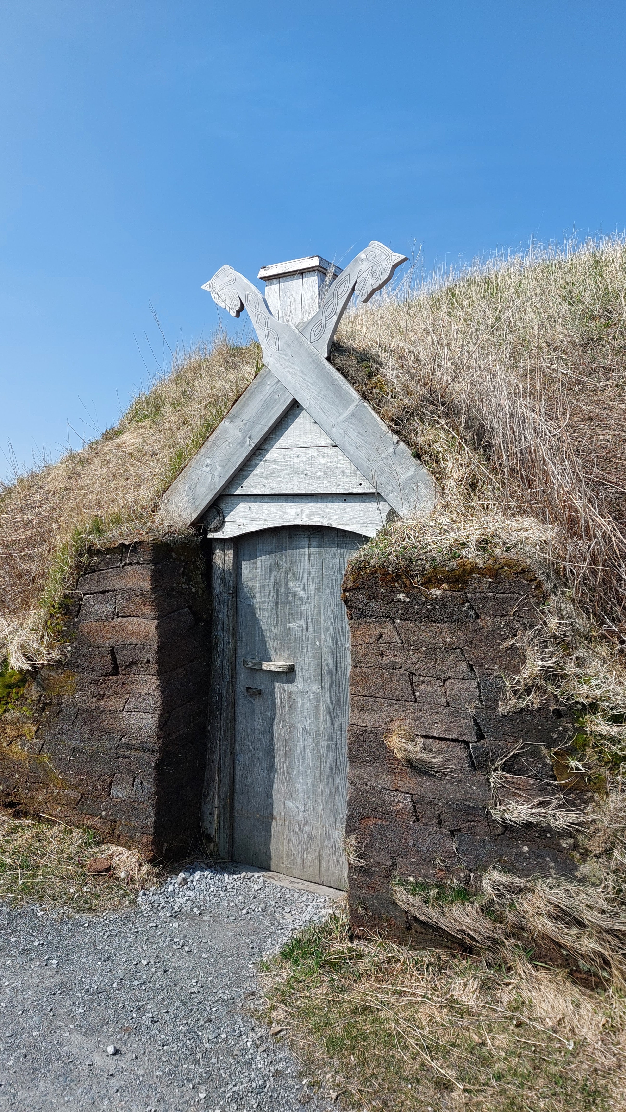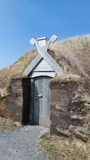 Schließlich erreichen wir L'Anse aux Meadows. Am Parkplatz wieder ein zwitschernder Robin. Das Visitor Center ist geschlossen und man muss sich den Zugang zum Dorf erst erarbeiten, da das Gebäude den Eingang versperrt. Eines der Grashäuser ist sogar geöffnet. Drinnen bekommt man einen Eindruck, wie die Wikinger hier gelebt haben.